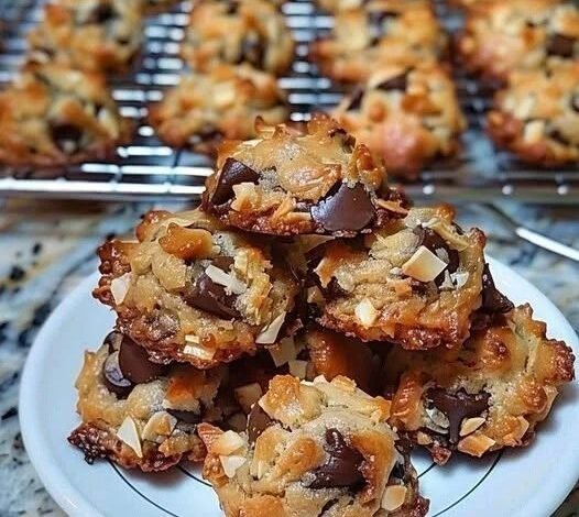 Packed with toasted nuts, melty chocolate chunks, coconut, and a perfectly chewy center, they’re the kind of cookie you make “just to try” — and suddenly half the batch is gone.